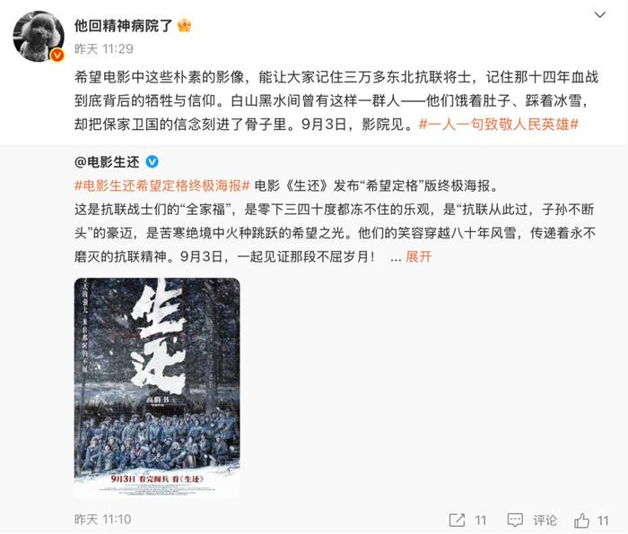 举个例子,《生还》就应该小片大宣发。如果拿1000万的宣发,我相信票房就能过2亿。但大家都不信,我也没那么多钱。因为中国市场都是吃人口红利,把喜欢战争片,喜欢抗联历史的观众打捞起来就行。但我们现在无力出击,没有那么多宣传经费去做商业化推广。